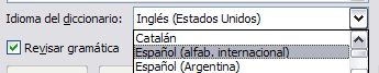Cambiamos el idioma, abriendo la ventanita de opciones y seleccionando. En este caso será Español (alfab. internacional)