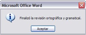 Una vez Word haya terminado de revisar la ortografía y estructura gramatical del documento. Aparecerá una ventanita como se muestra en la figura a continuación, como alerta de haber terminado este proceso.