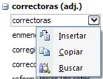 Seleccionamos de estas múltiples opciones la que más se adecue a nuestro texto. En este caso tomaremos la sugerencia de la palabra "correctoras". Nos ubicamos en esta palabra y veremos que han una flechita que indica la existencia de una ventana.